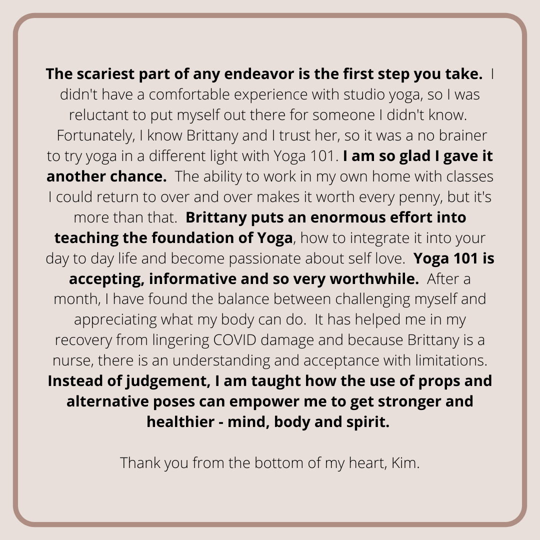 Watch this workshop as a sample of what we'll be covering in YOGA 101! We chat all about how to bring mindfulness to all forms of movement!